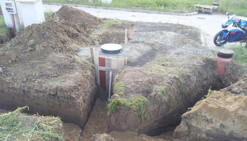 Výkopové práce v těžkých podmínkách (rašelina, sklála), pokládka kanalizace